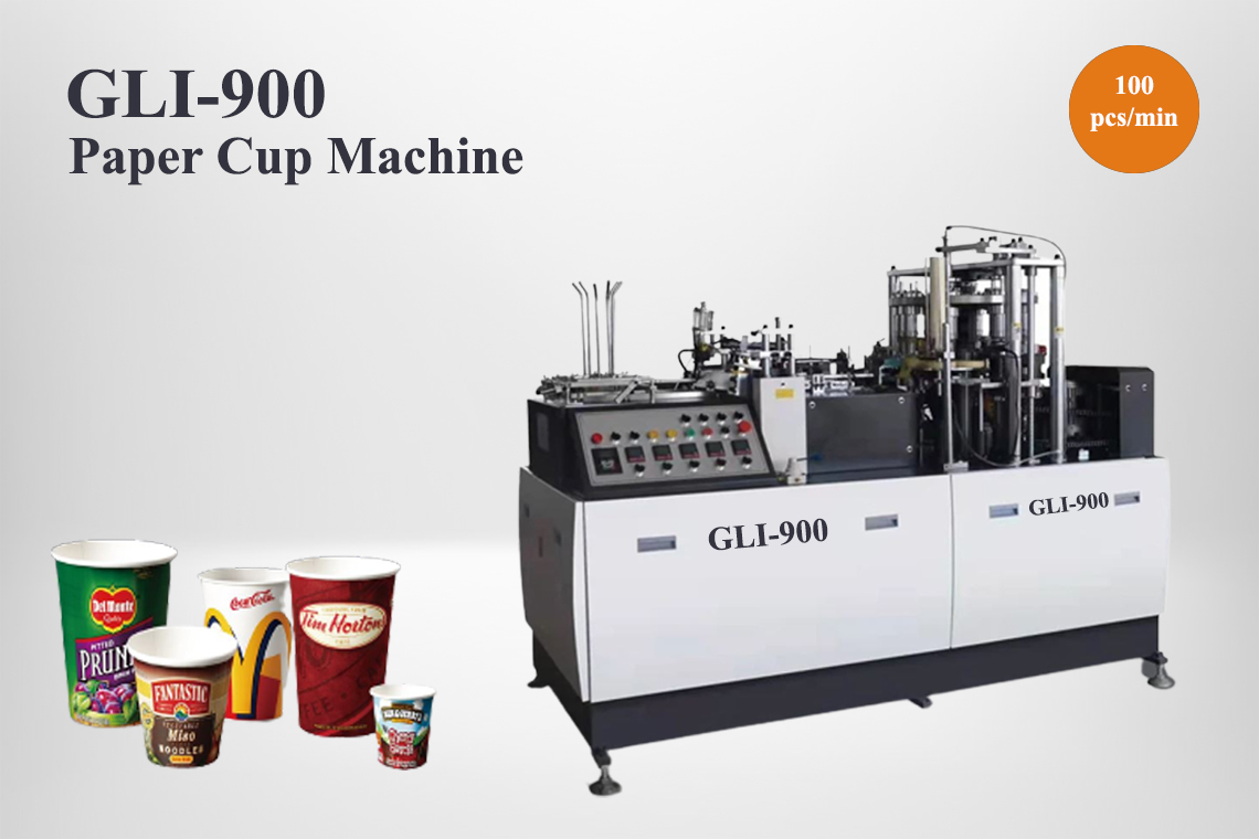 GLI-900 Open Dividing Cam Paper Cup Machine is improved & absorb the High speed machine and medium speed machine advantage, more reliable and durable. It makes both one- side or two-side PE-film-coated paper cups after running a whole procedure of automatic Multi-step pre-printed-cup-fan-paper Feeding (Multi-step paper-feed and Anti-back device to keep the accurate position), cup-body-side welding, silicone-oil lubricating(for top curling), robot transfer cup body, bottom-disk punching, bottom pre-heating and pre-folding, main heating, bottom knurling(cool device for 2PE), top curling, cup discharging and collecting.